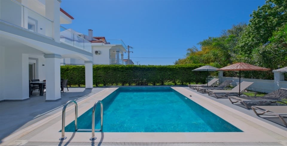 Fethiye Koca çalış plajına yakın mesafede bulunan özel yüzme havuzlu lüks kiralık villamız toplam 7 kişilik konaklama kapasitesine sahiptir. Villamız Fethiye merkeze 5,5 km mesafede bulunmakta olup en yakın yürüme mesafesindeki Koca Çalış Plajına olan mesafesi 750 metredir. Villamızın yeşillikler içersin de muhteşem bahçesi, bahçesinde ise güneşlenme alanı, şezlong, şemsiye, yemek masası, özel yüzme havuzu ve mangal bulunmaktadır. Bu villamızdan toplam 3 tane yan yana bulunmakta olup kalabalık gruplar ve aileler için ideal bir tercih olacaktır. Villamızdan Dalaman Hava alanı yaklaşık olarak 45 km mesafede bulunmaktadır.