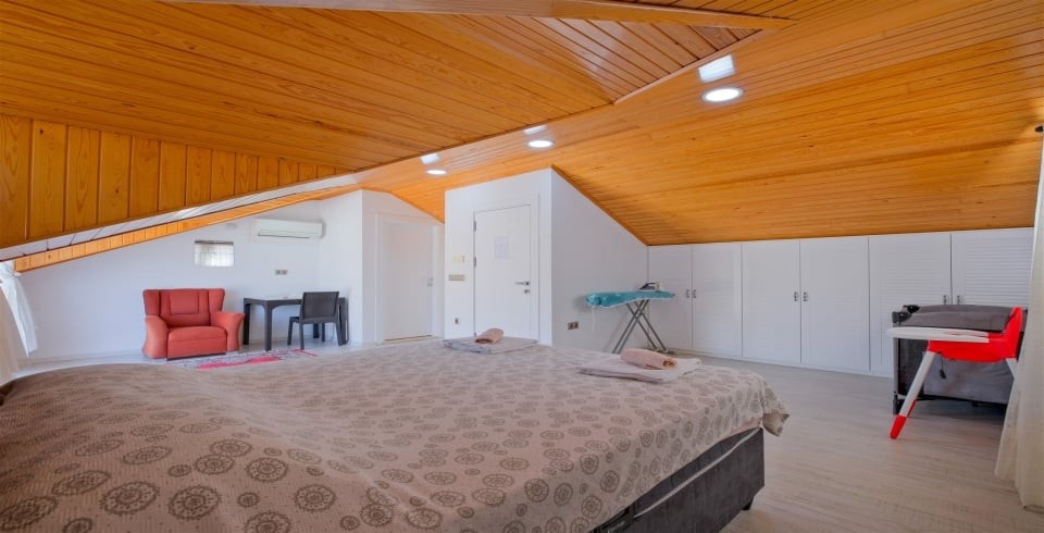 1. Yatak Odası : Süit oda, 1 adet çift kişilik yatak, elbise dolabı, komodin, klima, banyo ve tuvalet bulunmaktadır.