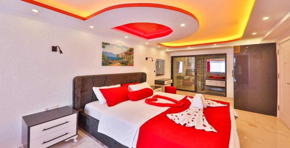 1: Yatak Odası: Çift kişilik yatak ,klima, jakuzi, komodin, makyaj masası ,banyo ve tuvalet bulunmaktadır.