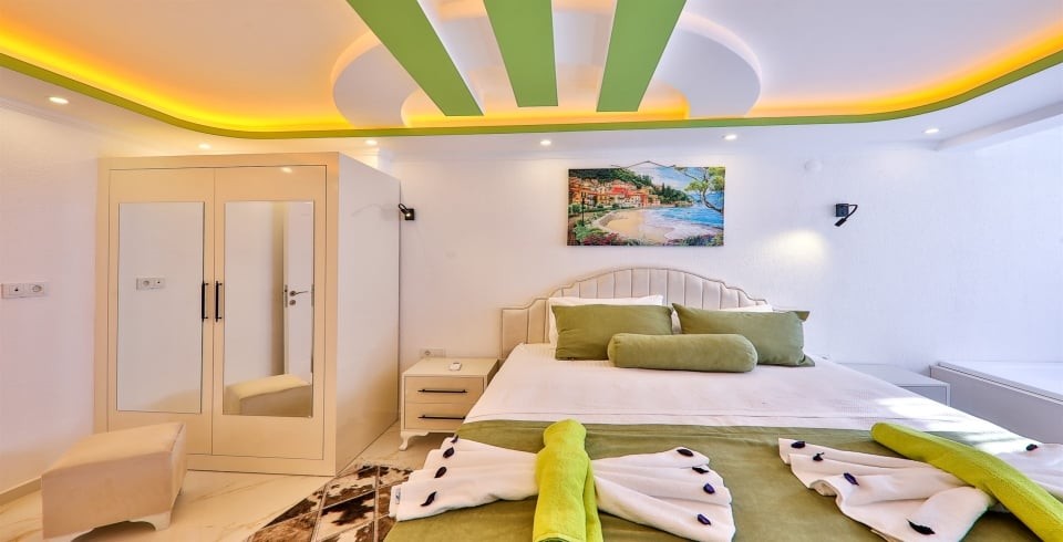 2: Yatak Odası: Çift kişilik yatak, jakuzi klima, komodin, makyaj masası, banyo ve tuvalet bulunmaktadır.
