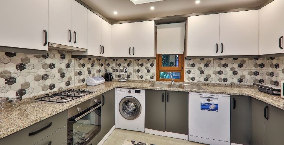 Mutfak: Modern dizaynlı, tam donanımlı Amerikan mutfak içerisinde buzdolabı, çamaşır ve bulaşık makinesi, 4lü ocak, mikrodalga fırın, kettle, tost makinesi, yemek masası, yemek takımı, çatal bıçak takımı, tava ve tencereler bulunmaktadır.