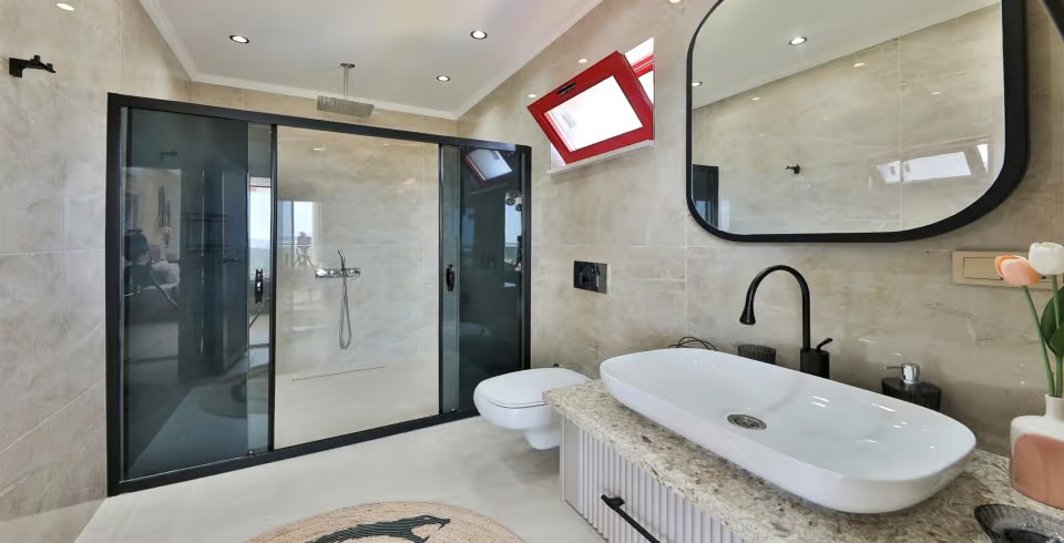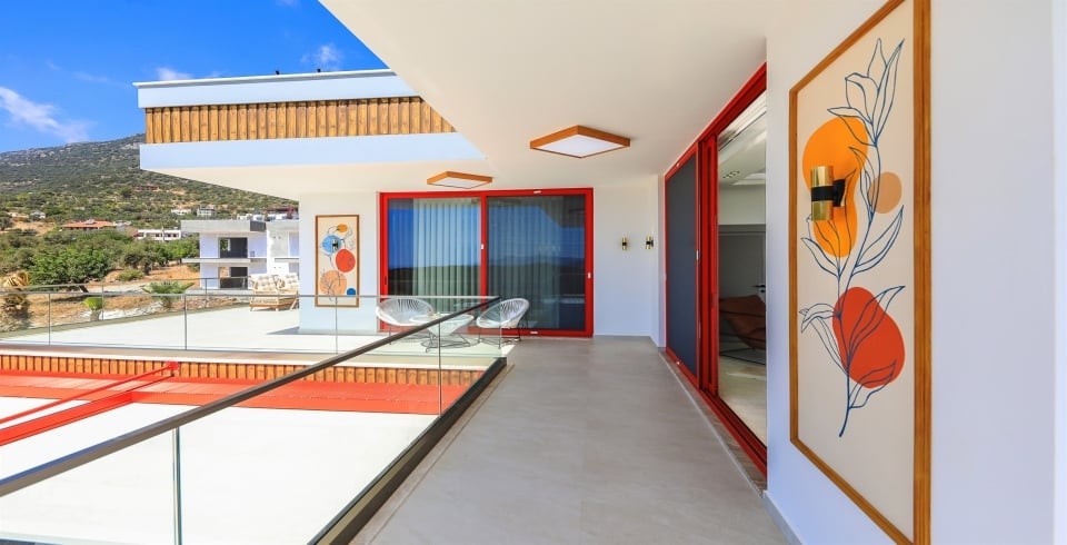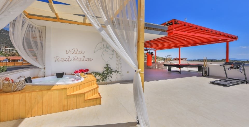 Teras: Eşsiz deniz ve doğa manzarası eşliğinde; jakuzi, bilardo masası, spor aletleri, sinema sistemi, mini mutfak ,salıncak, yemek masası ve oturma grubunda keyfini çıkartabilirsiniz