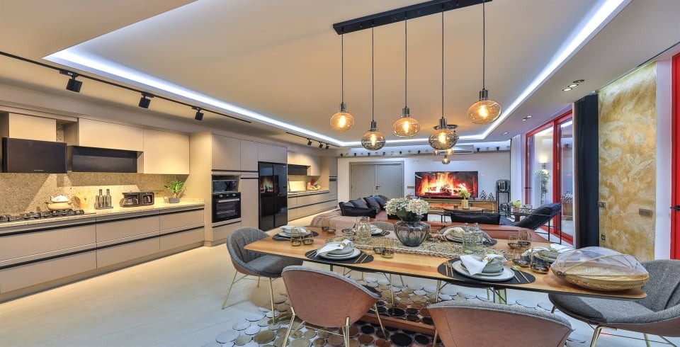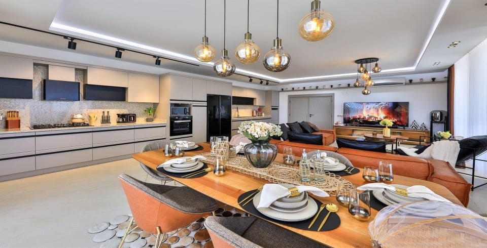 Mutfak : Lüks ve geniş bir mutfağa sahiptir. Buzdolabı, bulaşık makinası, çamaşır makinesi, fırın, 4´lü ocak, filtre kahve makinası, türk kahve makinası, kettle, 6 kişilik yemek takımı, tava, tencereler, çatal, bıçak vb bir çok araç gereç bulunmaktadır.. Mutfağımız ´da misafirlerimiz için her şey düşünülmüştür.