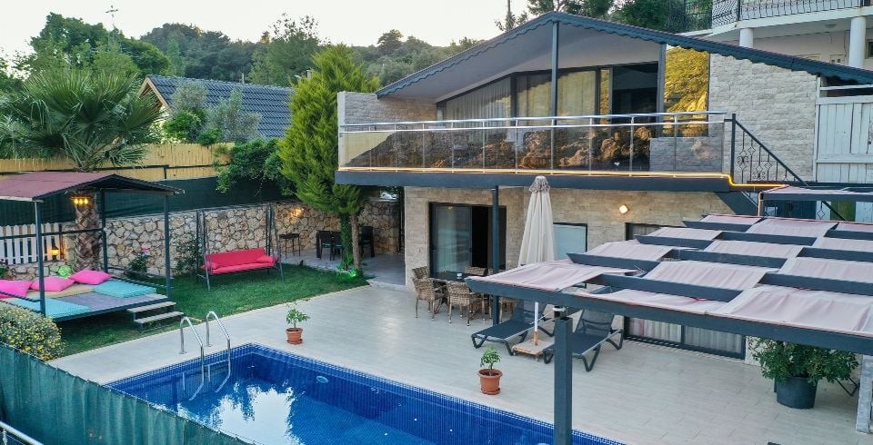 Havuz : Villamızın havuzu ise etrafı dışarıdan görülmeyecek şekilde korunaklı olup sizlere huzurlu ve keyifli havuz deneyimi sunmaktadır. Size özel muhafazakâr yüzme havuzu, şezlong keyfi ve şemsiye ile yazın en güzel günlerinde sizleri bekliyor.