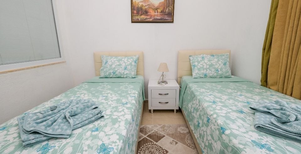 3. Yatak Odası : iki tane tek kişilik yatak la beraber klima, elbise dolabı, makyaj masası, komodin, banyo ve lavabodan oluşmaktadır.