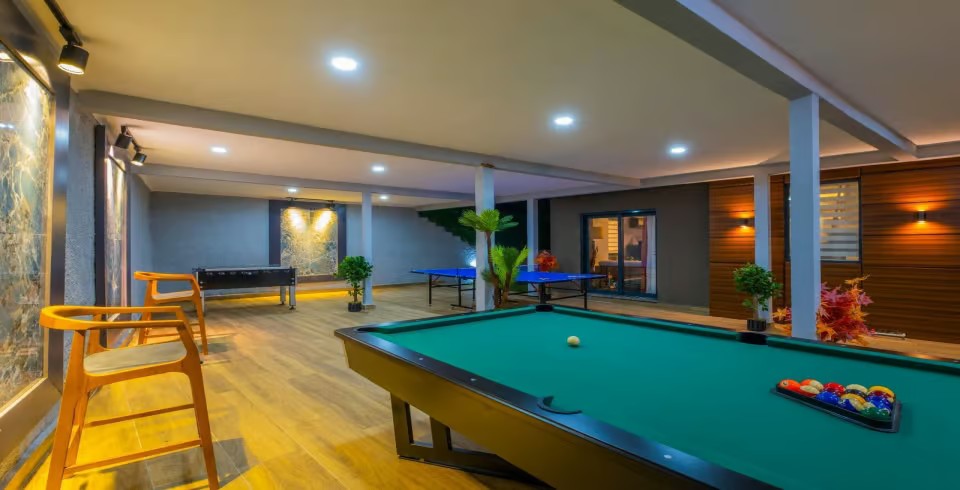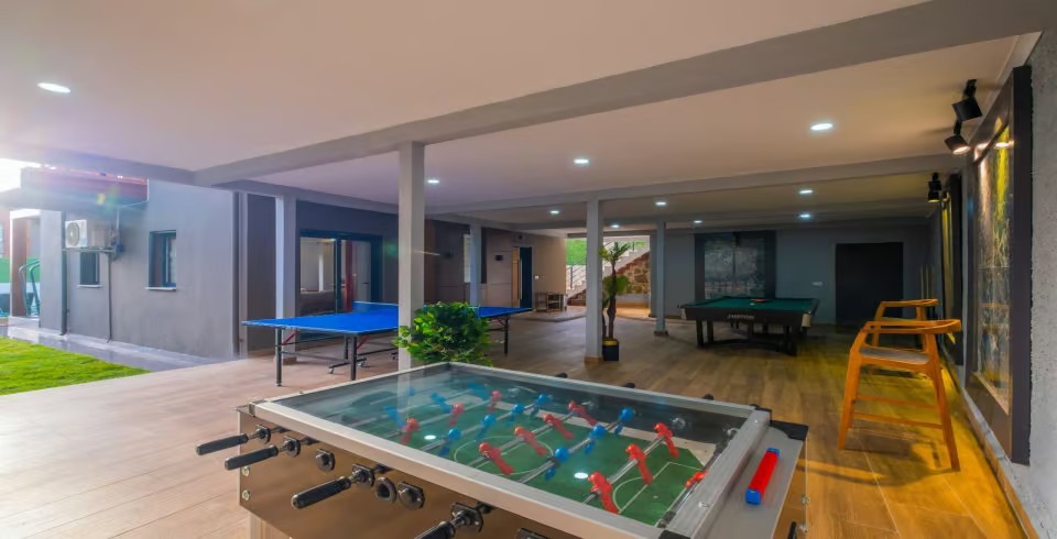 Eğlence ve keyif Villa Rosewood’un en büyük ayrıcalıklarından biri! Bilardo masası,langırt ve tenis masası ile dostlarınızla keyifli rekabetlere girebilir, doğayla iç içe geniş bahçede vakit geçirerek ruhunuzu dinlendirebilirsiniz. Villanın modern iç dizaynı, lüks detayları ve şık dekorasyonu ise konforunuzu en üst seviyeye taşıyor.