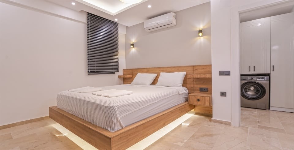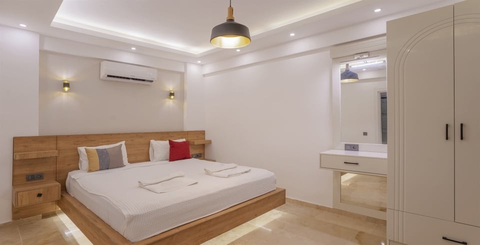 1. Yatak Odası: 1 adet çift kişilik  yatak, ebeveyn banyosu, komodin ve klima bulunmaktadır.