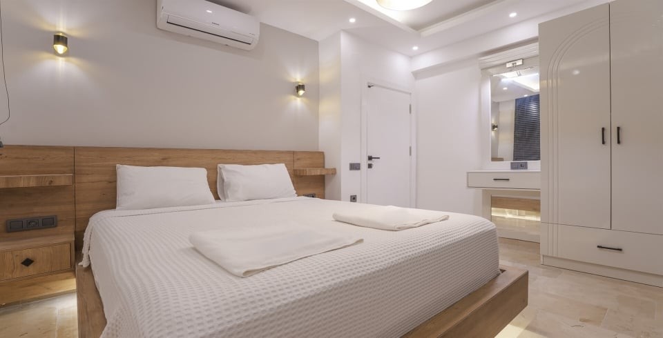 3. Yatak Odası: 2 adet tek  kişilik  yatak, ebeveyn banyosu, komodin ve klima bulunmaktadır.