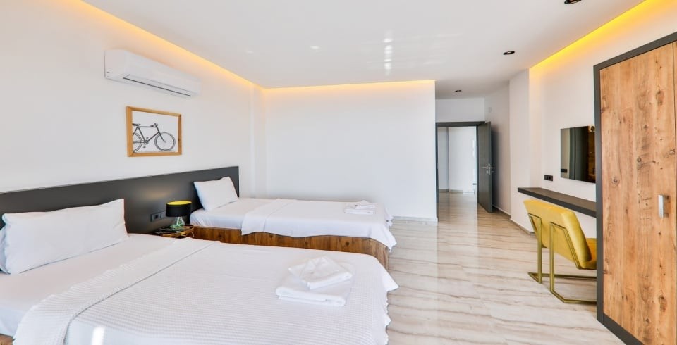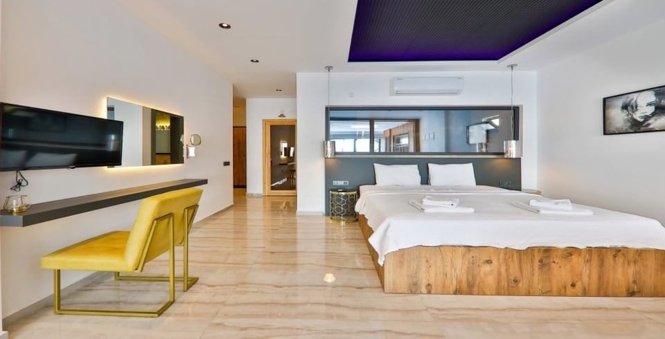 Villa Royal Romeo’da huzur, konfor ve romantizm bir arada! Özel olarak tasarlanmış villamız, 2 yatak odası, 3 yatak ve 3 banyosuyla çiftler ve 4 kişiye kadar olan aileler için mükemmel bir seçenek sunuyor. Denizin ve doğanın büyüleyici manzarasında güne başlayın, sevdiklerinizle birlikte keyifli anlar biriktirin.
