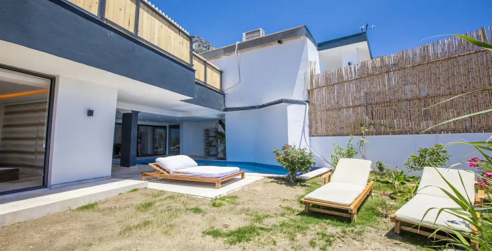 Havuz ve Bahçe :Deniz manzaralı özel yüzme havuzu, şezlong, şemsiye, bahçe yemek masası ve barbekü bulunmaktadır.