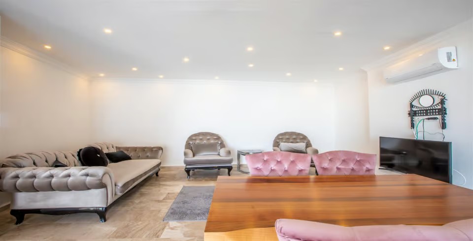 Salon : Sizi şık bir oturma grubu ile klima, televizyon, internet, uydu, koltuk, sehpa ile ferah bir salon bekliyor olacaktır. Havuz terasına çıkış yapılmaktadır.