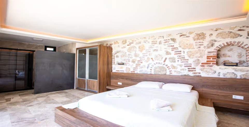 2. Yatak Odası : 1 adet çift kişilik yatak, klima, elbise dolabı, makyaj masası, komodin, banyo ve lavabo bulunmaktadır.