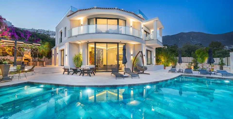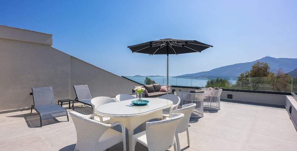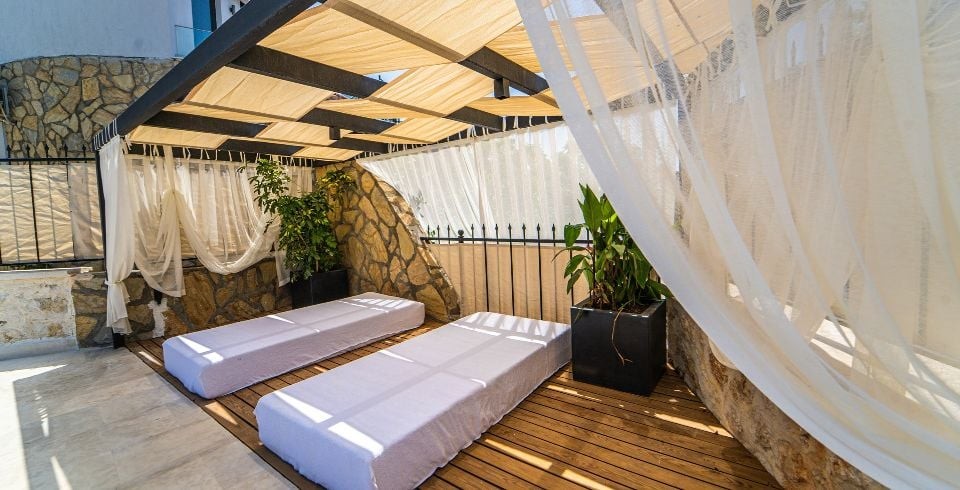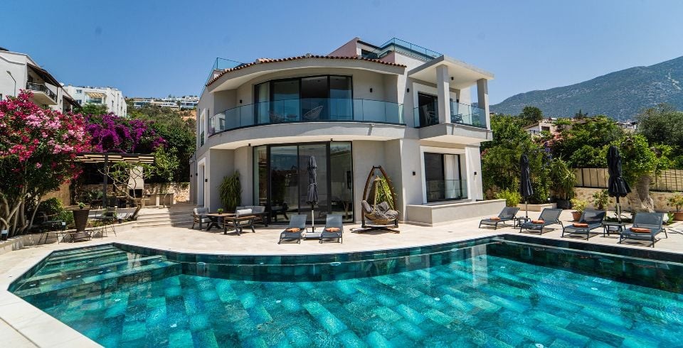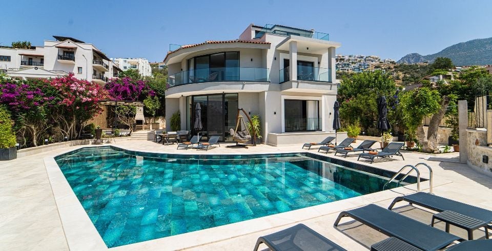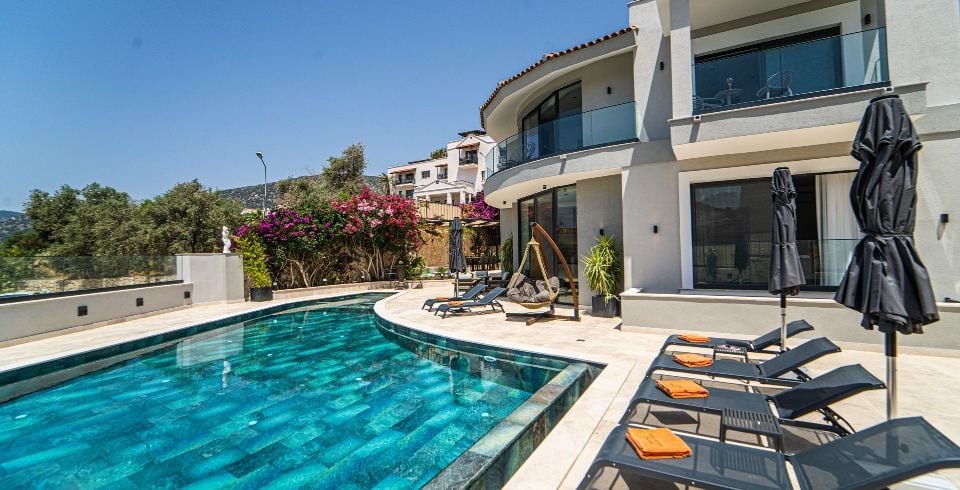 Kalkan Kalamar bölgesinde konumlanmış olan villamız 5 yatak odalı 11 kişilik kapasiteye sahiptir. Kendisine özel bir tasarımı ile dizayn edilmiş olan villamızın en süit çift kişilik yatak odasında jakuzi de bulunmaktadır hem de ultra lüks olup siz misafirlerimize ferah, rahat bir tatil sunmaktadır. Ayrıca mükemmel deniz manzarasında sahip olan Villa Safran yarı muhafazakar özelliğine sahip olup geniş ailelerimizin ilk tercihi olacaktır. Kalamar Plajına çok yakın mesafede bulunmakta olup villamız konum itibari ile de market ve restaurantların yakınındadır. Villamız geniş bahçeye ve havuz terasına sahip olup çocuklar için de düşünülmüş oyun alanı da bulunmaktadır.
