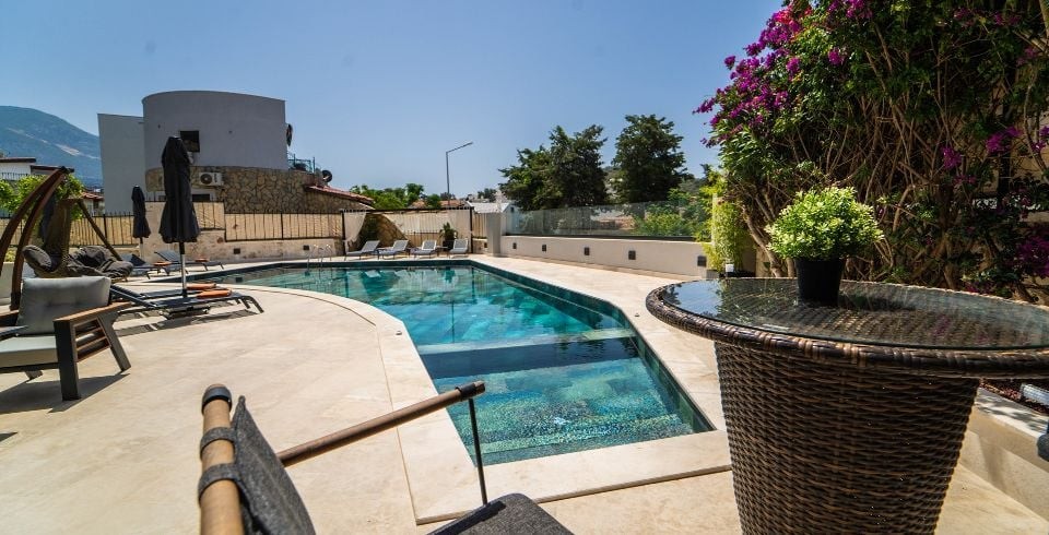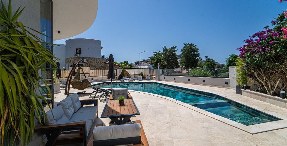 Havuz ve Bahçe : Özel yüzme havuzu, geniş güneşlenme terası, mangal, şezlong, güneş şemsiyesi masa ve sandalye bulunmaktadır.