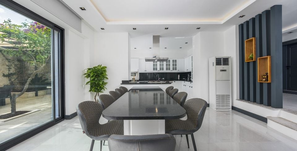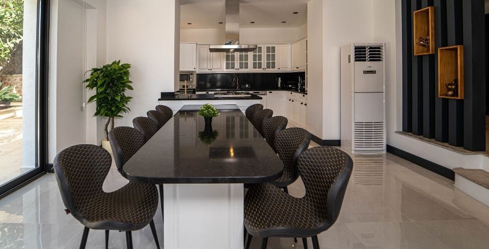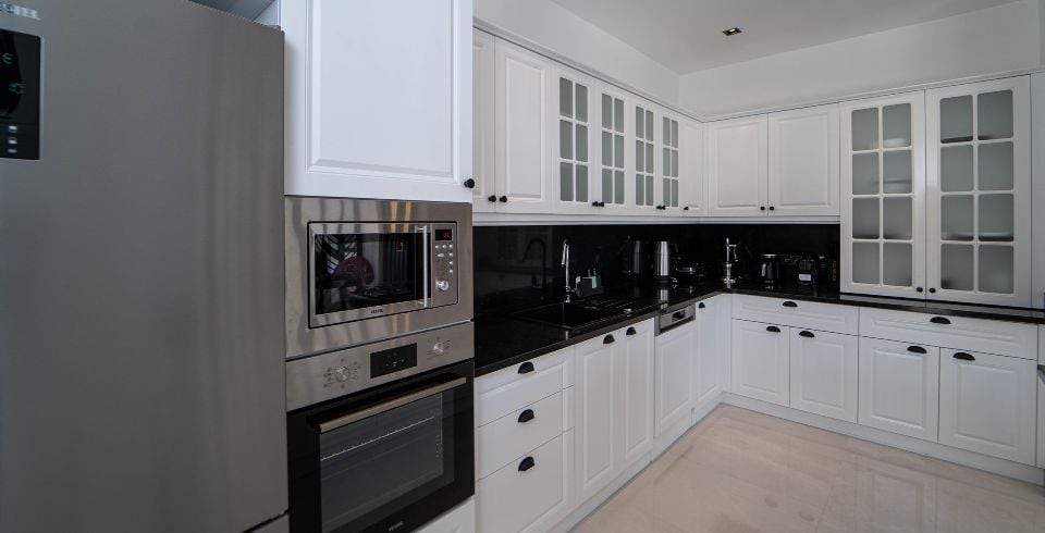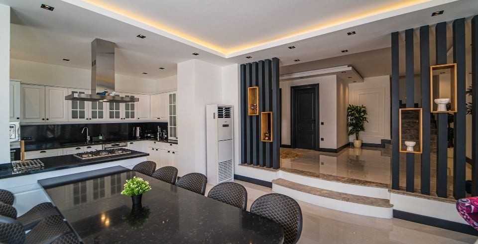 Mutfak :  Buzdolabı, çamaşır makinası, bulaşık makinası, yemek masası, su sebili, su ısıtıcısı, ekmek kızartma makinası, fırın, 4'lü ankastre ocak, mikro dalga ve mutfak araç gereçleri bulunmaktadır.