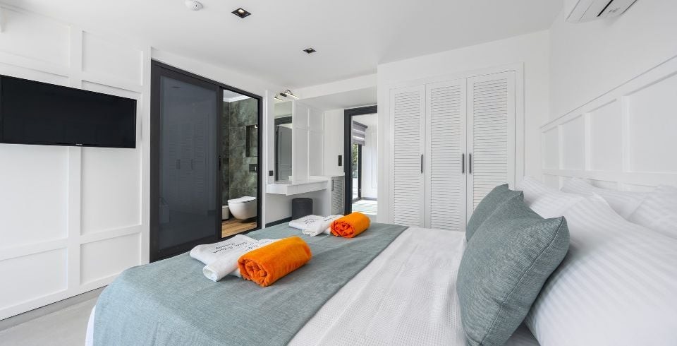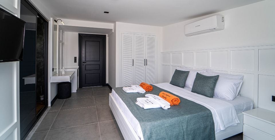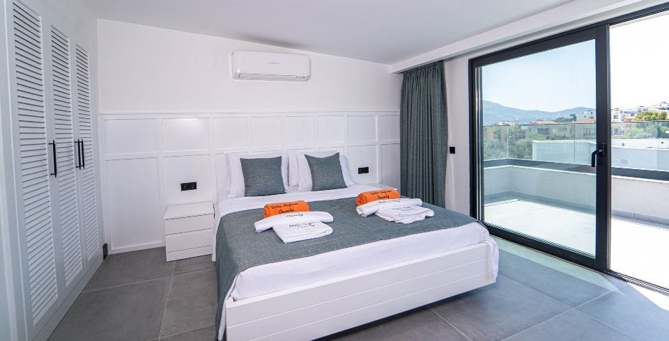 3 Yatak Odası : Bir adet çift kişilik yatak, klima, komodin, elbise dolabı, TV, banyo ve tuvalet yer almaktadır.