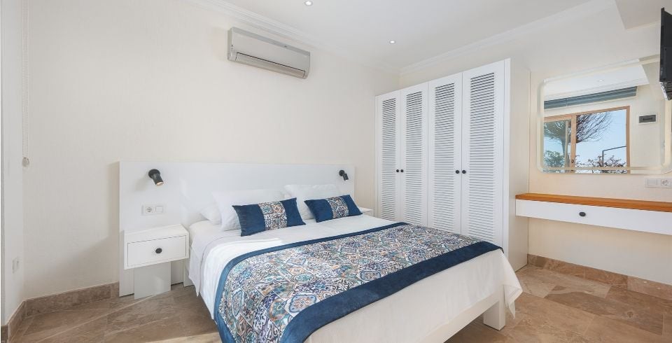 3. Yatak Odası : Süit yatak odası çift kişilik yatak, klima, elbise dolabı, makyaj masası, komodin banyo ve lavabo bulunmaktadır.