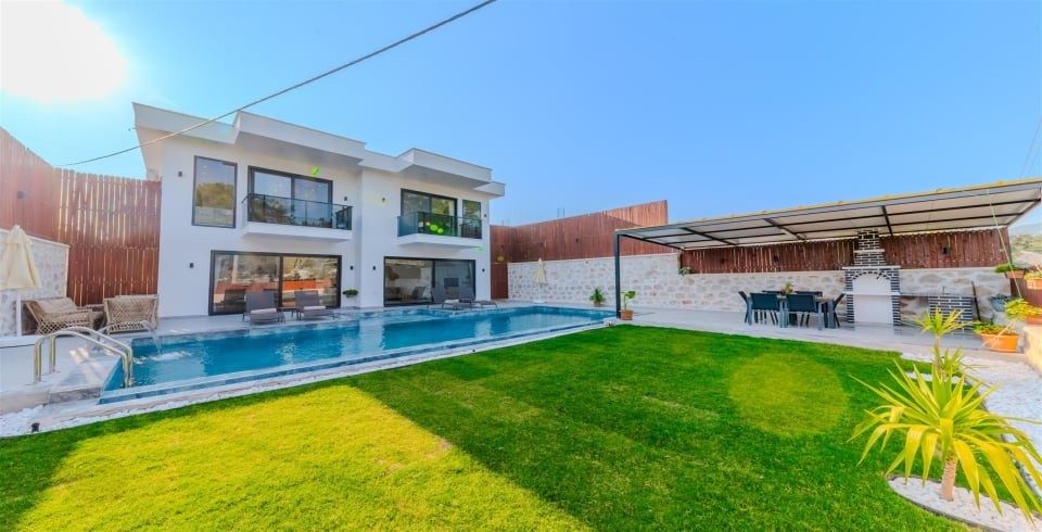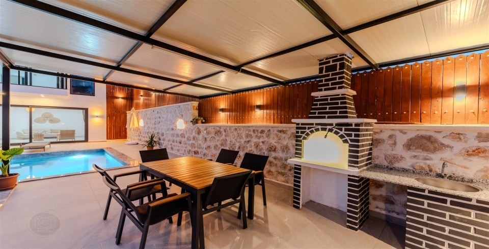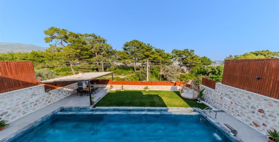 Havuz ve Bahçe : Özel yüzme havuzu bulunan villamızın havuz terasında şemsiye, şezlong, barbekü, pergola, oturma alanı, yemek masası ve sandalyeler bulunmaktadır.