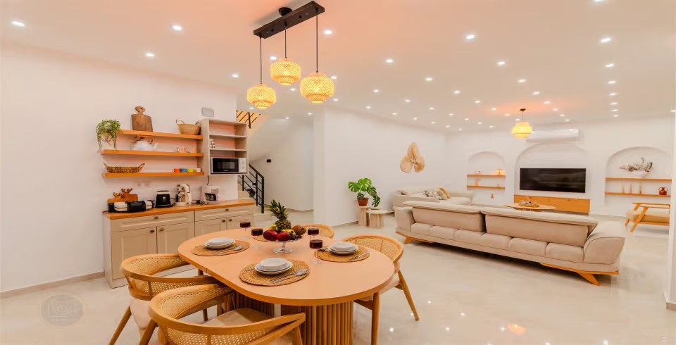 Mutfak : Amerikan açık mutfak ve salona sahip villamızın mutfağında buzdolabı, bulaşık makinası, ankastre ocak, fırın, mikrodalga, 4'lü ankastre ocak, su ısıtıcısı, çamaşır makinası, yemek masası ve temel mutfak araç ve gereçleri bulunmaktadır.
