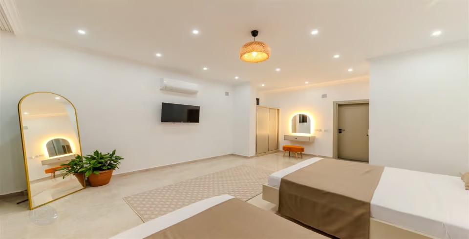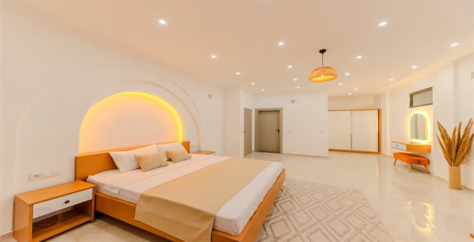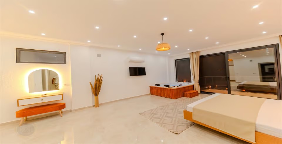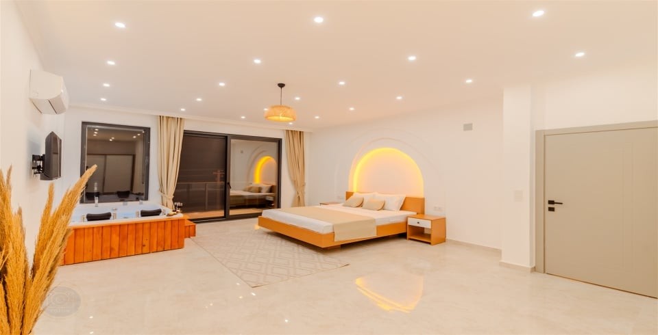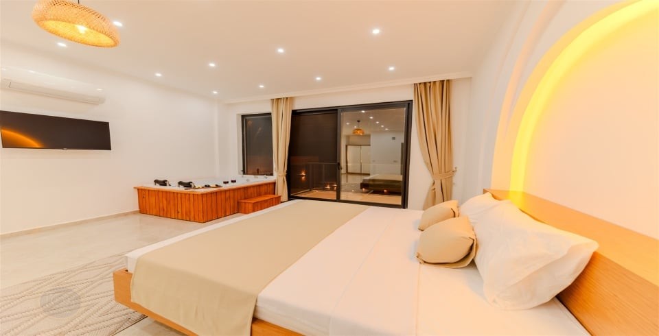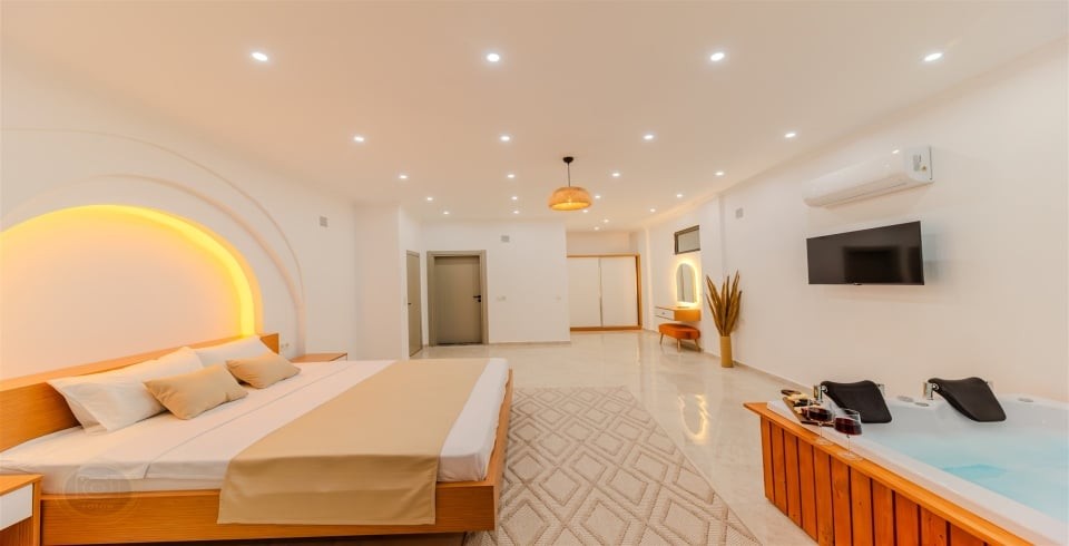 1. Yatak Odası : 1 adet Çift kişilik yatak, Jakuzi, klima, elbise dolabı, makyaj masası, komodin, banyo ve WC bulunmaktadır.