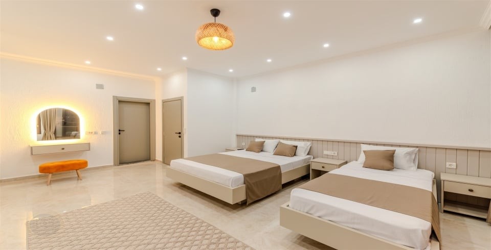 2. Yatak Odası : 1 adet Çift kişilik yatak, 1 adet tek kişilik yatak, klima, elbise dolabı, makyaj masası, komodin, banyo ve WC bulunmaktadır.