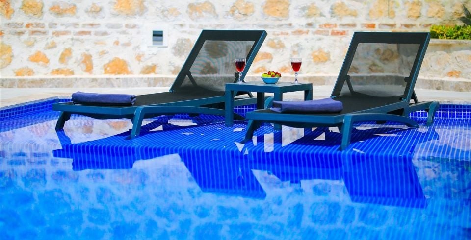 Havuz ve Bahçe : Kiralık yazlık villamızın özel yüzme havuzu ve havuz terasında Şezlonglar , güneş şemsiyesi , mangal , yemek masası ve sandalyeler bulunmaktadır.
