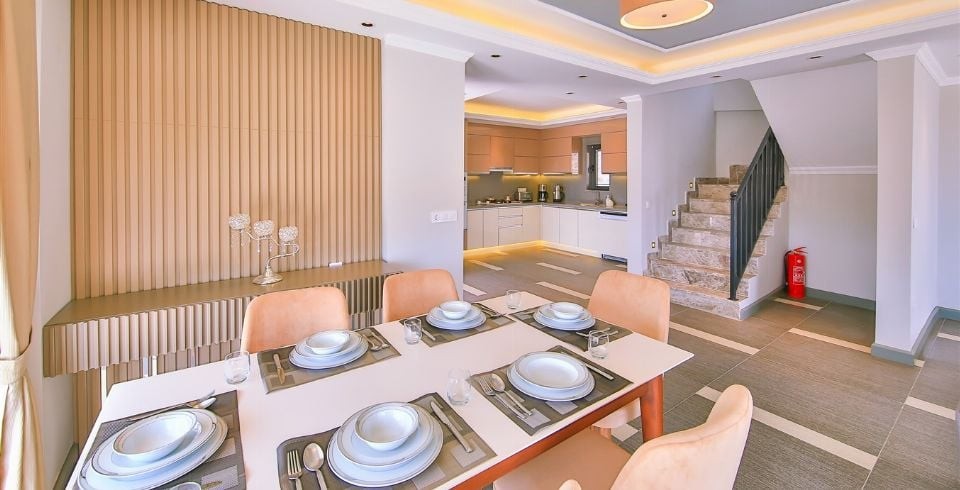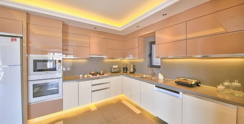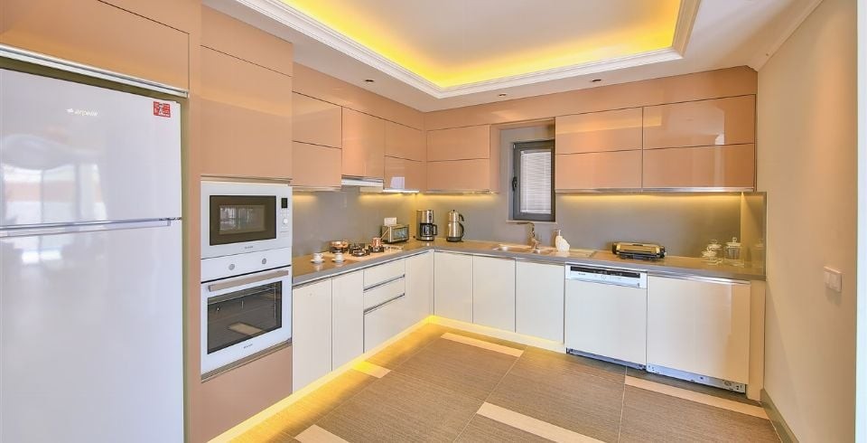 Mutfak : Amerikan Mutfak , buzdolabı, bulaşık makinası, yemek masası, ankastre fırın, mikrodalga fırın, 4'lü ocak, tost makinası, elektrikli su ısıtıcısı, yemek takımı, çatal bıçak seti, tavalar, tencereler, bardaklar bulunmaktadır.