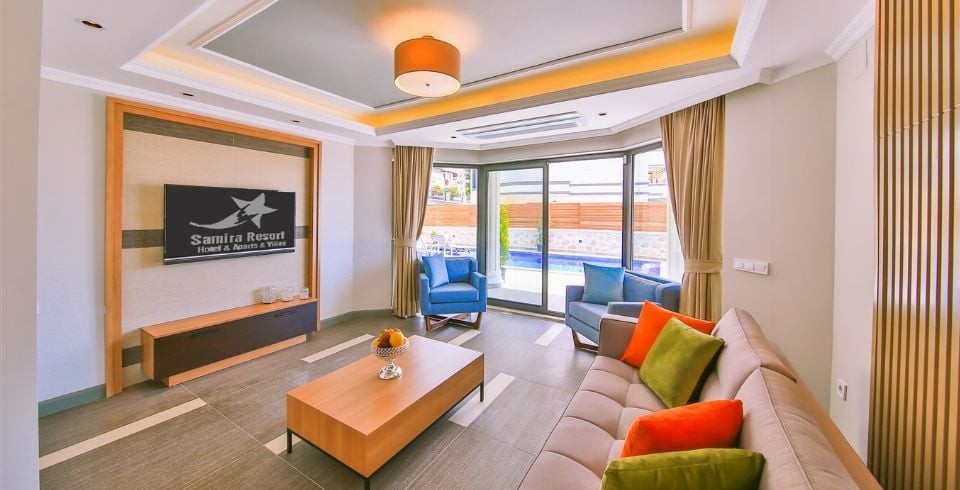 Salon : Villamızın Salonunda Oturma grubu, televizyon, uydu alıcısı bulunmaktadır.