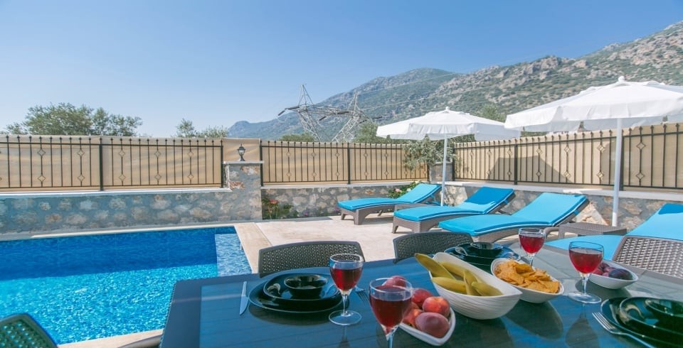 Kiralık yazlık villamız Kalkan Kördere mevkisin de konumlanmıştır. 3 yatak odalı 6 kişilik kapasiteye sahiptir. Doğa içerisinde sakin sessiz konumla olan villa samyeli özel yüzme havuzu ve havuz terası tamamen korunaklı olup muhafazakar ailelere göz hitap etmektedir. Villamızın içerisinde 2 adet banyo ve tuvalet  olup 1 banyo tuvalet ortak kullanımdır. Süit yatak odasında balayı çiftlerine özel ve  geniş ailelere özel jakuzi bulunmaktadır.