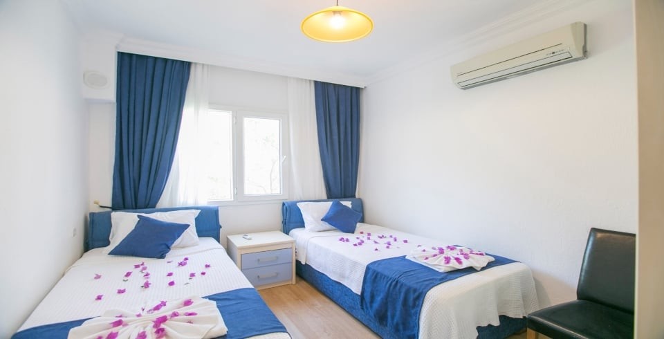 3. Yatak Odası : 2 adet tek kişilik yatak, klima, elbise dolabı, makyaj masası, balkon, banyo ve tuvalet ortak kullanımdır.