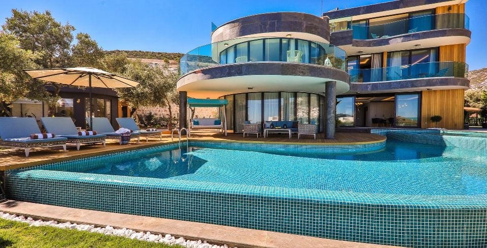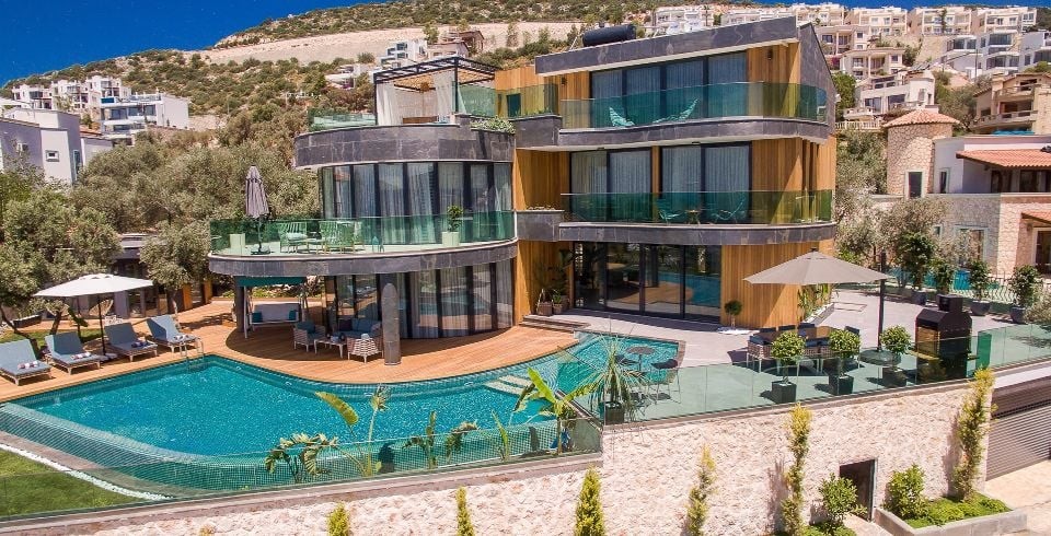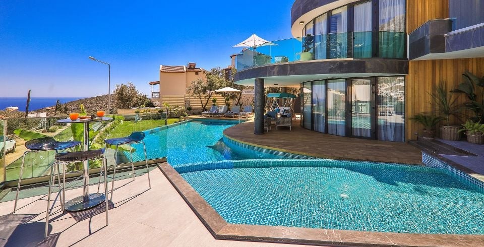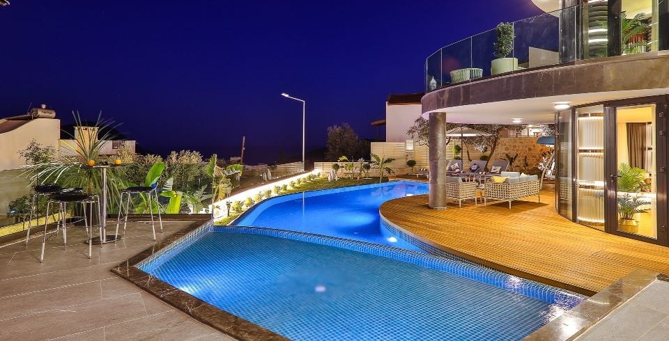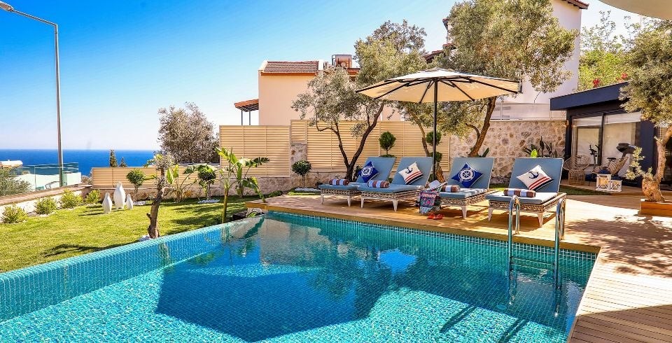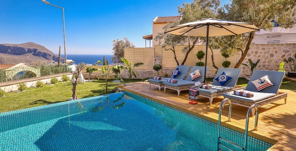 Villa Sandie, Kalkan Kalamar bölgesinde yer almaktadır. 4 yatak odası olan tatil villamız 8 kişilik konaklama kapasitesine sahiptir. Deniz manzaralı konuma sahip olan tatil villamızda jakuzi, hamam ve sauna bulunmaktadır. Geniş ve oldukça konforlu havuz alanı özenle dekore edilmiş odaları ile sizlere unutamayacağınız bir villa tatili sunmaktadır.
