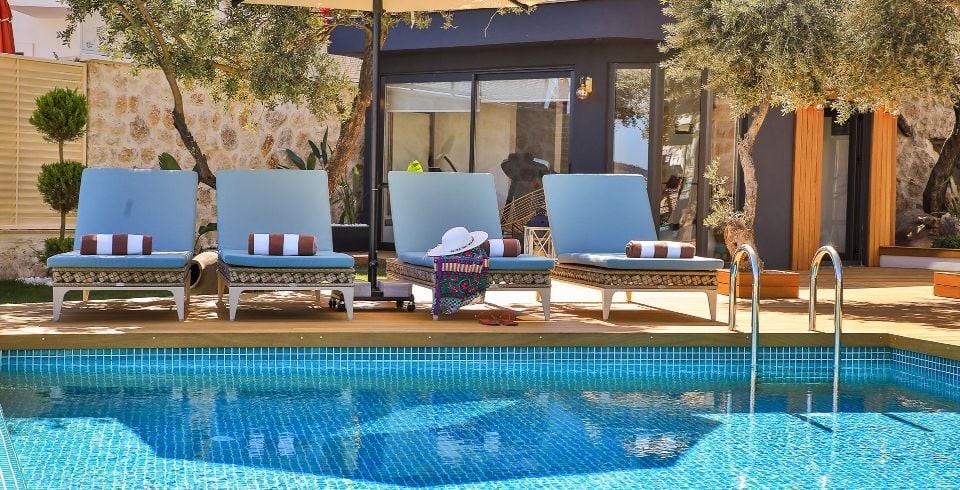 Teras Havuz 1 : 4 x 3,5 metre genişliğinde, derinliği 70 cm olan deniz manzaralı havuz teras katında bulunmaktadır. Aynı zamanda jakuzi özelliği bulunmaktadır. Havuz terasında  özenle dekore edilmiş oturma alanları ve bar alanı bulunmaktadır.