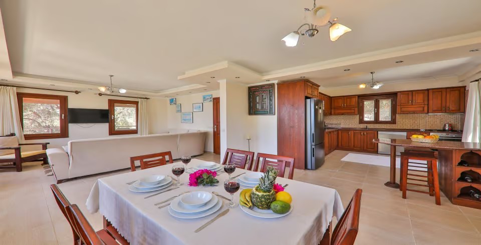 Mutfak : Amerikan açık mutfak, bulaşık makinası, buzdolabı, çamaşır makinası, ekmek kızartma, su ısıtıcısı, fırın, 4'lü ocak seti, yemek masası ve mutfak araç gerekleri 6 kişilik olarak mevcuttur.