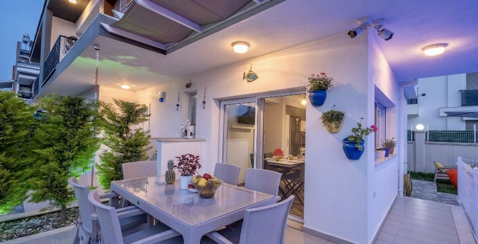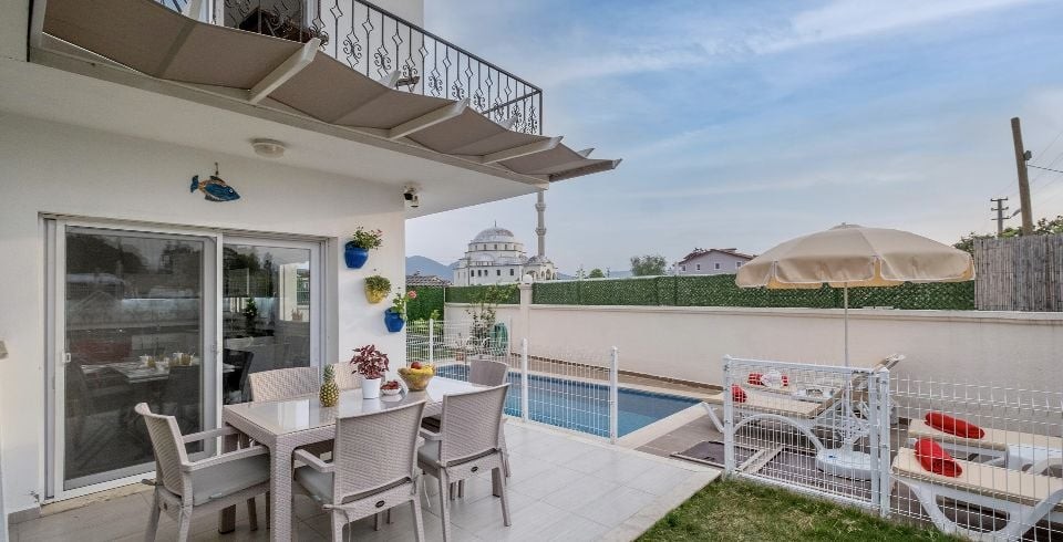 Villa Sarmaşık, Fethiye günlük başı Mevkiisin de olup Toplam, 4 yatak odasından oluşmuş, 8 kişi konaklama kapasitesine sahiptir. 2 Evebeyn 1 ortak olmak üzere topla 3 adet banyo-wc bulunmaktadır. Geniş aileler ve kalabalık arkadaş grupları için oldukça idealdir. Oldukça şık ve modern bir şekilde döşenmiş olan villamızda misafirlerimiz için her şey düşünülmüştür. Havuz terasında bulunan şezlonglarda güneşlenebilir, bahçe masasında muhteşem yemekler yiyebilir, salıncakta sallanıp keyifli dakikalar geçirebilirsiniz.