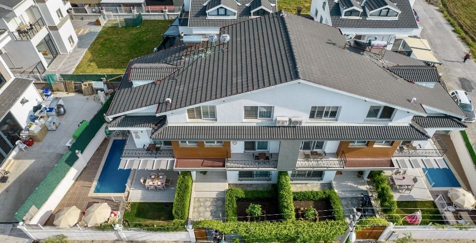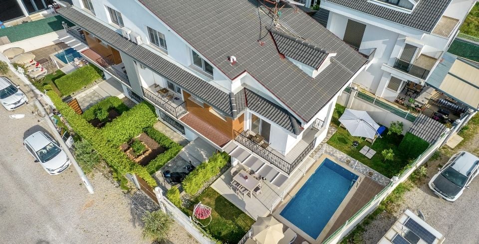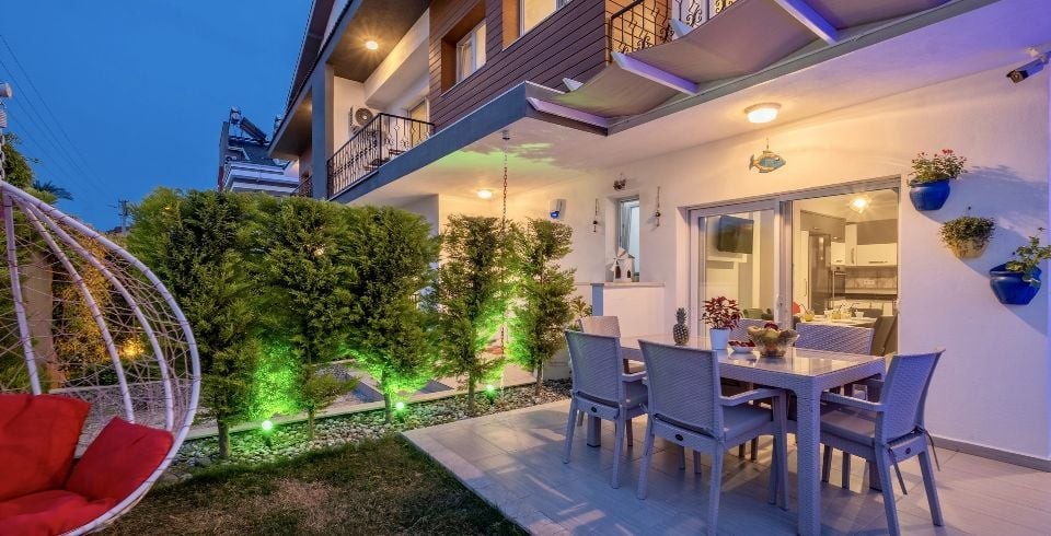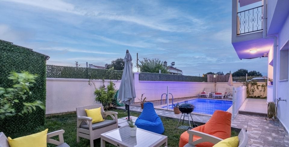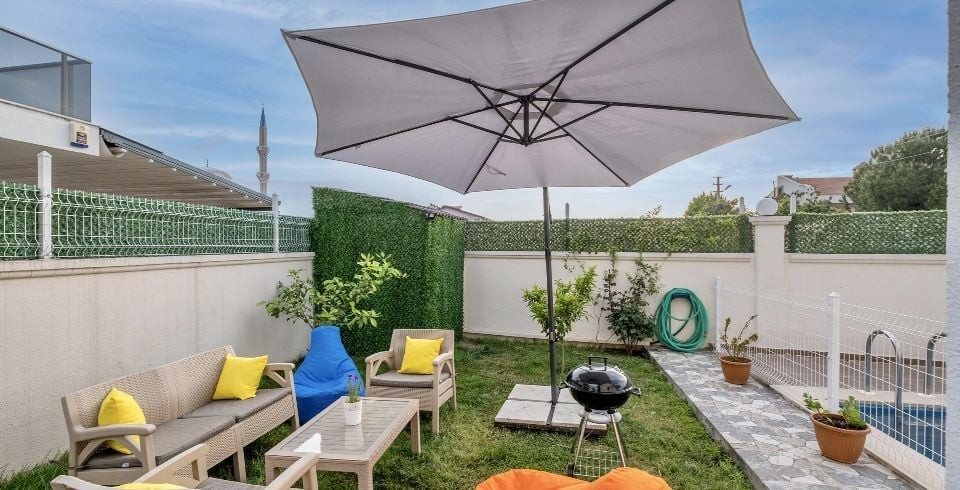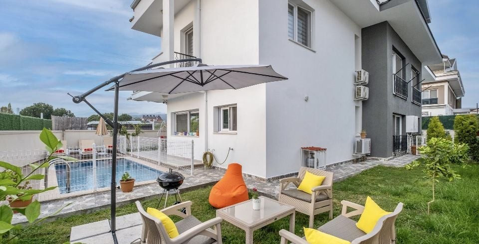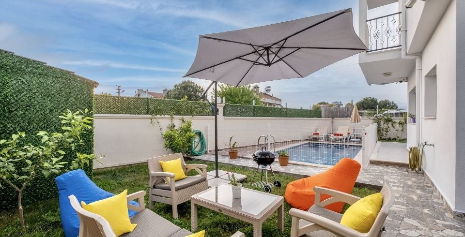 Bahçe : Özel yüzme havuzu, şezlong, şemsiye, duş, yemek masası, mangal bulunmaktadır.