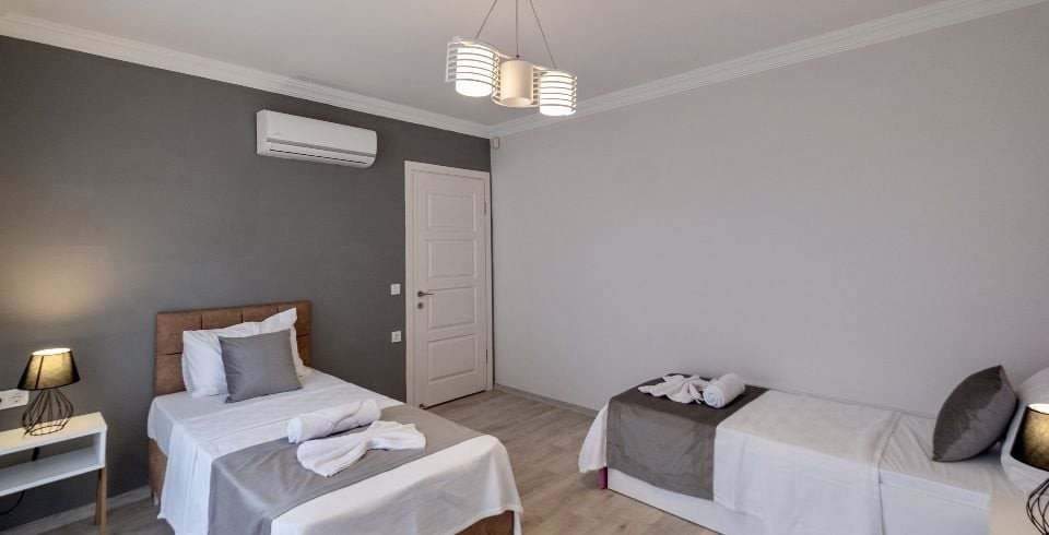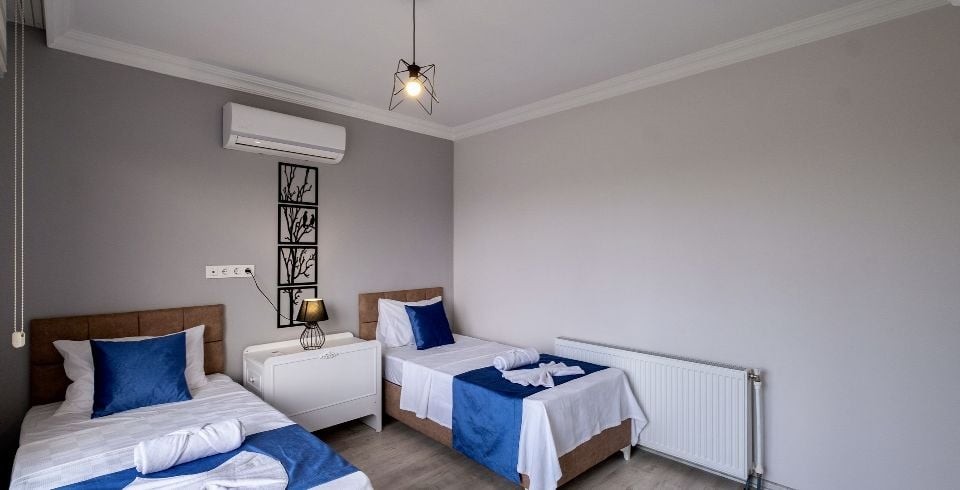 4. Yatak Odası : İki Tek kişilik yatak, komodin, elbise dolabı, makyaj masası, klima, banyo ve wc ortak kullanımdır.