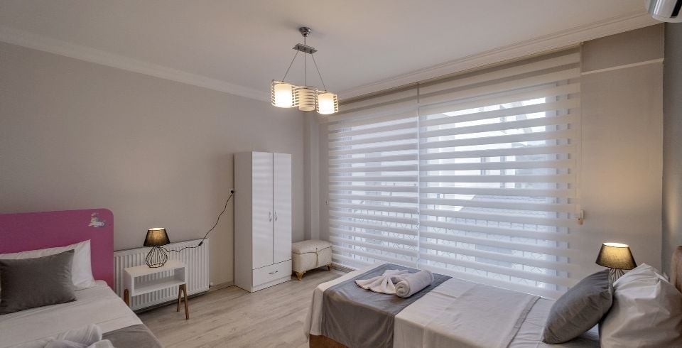 3. Yatak Odası : İki Tek kişilik yatak, komodin, elbise dolabı, makyaj masası, klima, banyo ve wc ortak kullanımdır.