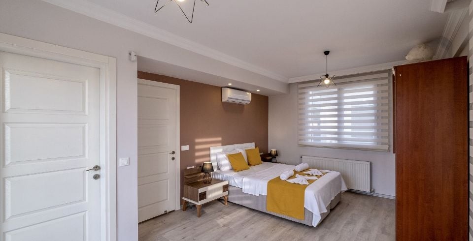 2. Yatak Odası : Çift kişilik yatak, komodin, elbise dolabı, makyaj masası, klima, banyo ve wc bulunmaktadır.