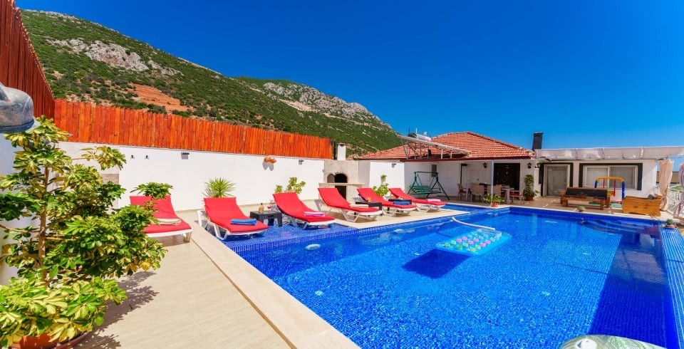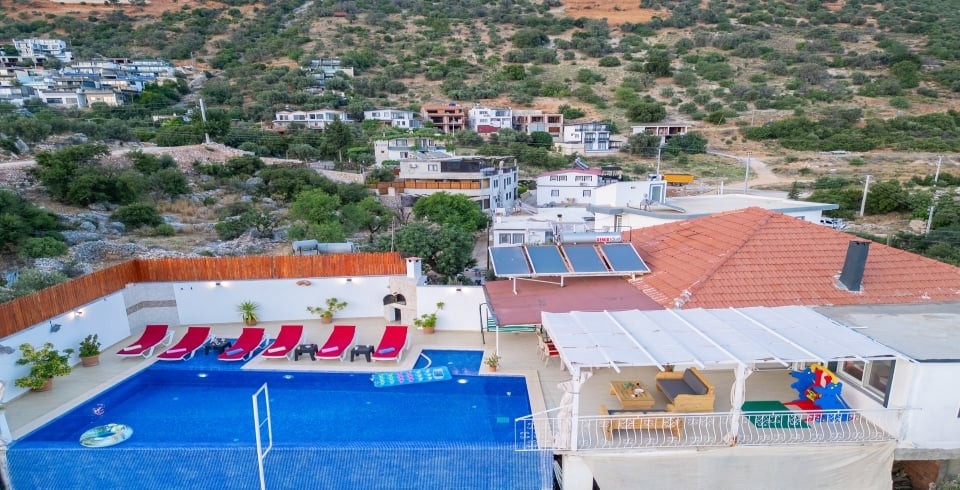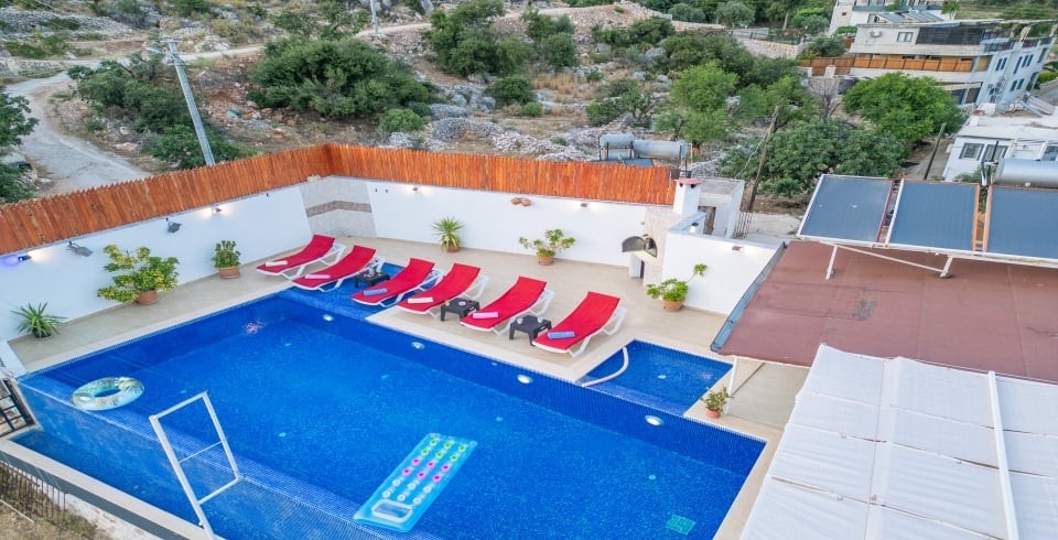 Villa Sarnıç Kördere, Kalkan’ın kırsal dokulu Kördere mevkisinde yer alan, 6 kişi kapasiteli, korunaklı havuzlu bir villadır. 3 yatak odası ve 3 banyosu ile hem aileler hem arkadaş grupları için rahat bir konaklama sağlar. Ana yatak odasında jakuzili özel banyo yer alırken, diğer odalar da modern banyolarla donatılmıştır. 4 × 9 metre ebatlarındaki özel havuz, yüzme keyfi sunarken havuz terası ve güneşlenme alanları mahremiyetli dinlenme imkânı sağlar. Bahçe, veranda ve geniş camlar sayesinde doğal ışık ve manzara ile buluşan iç mekân, açık hava keyfini içeri taşır.
