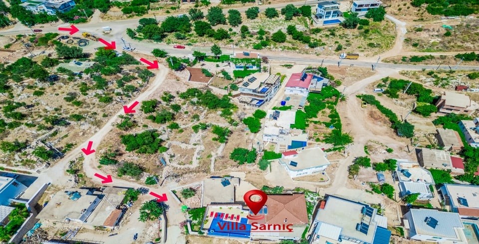 Villa, restoran, market ve günlük ihtiyaçlara kısa mesafede bulunurken, plajlara erişim araçla kolaylıkla sağlanabilir. Doğa yürüyüşleri ve huzurlu çevresiyle şehir karmaşasından uzakta, sakin bir tatil isteyenler için ideal bir tercih sunar.