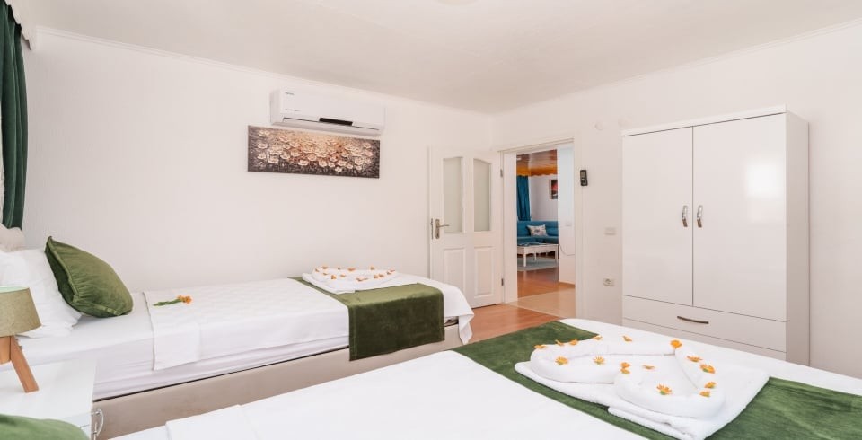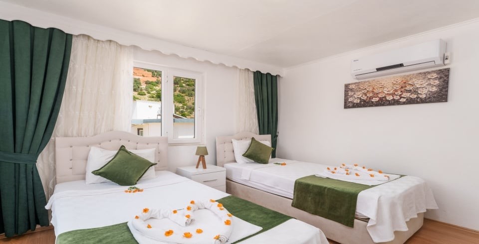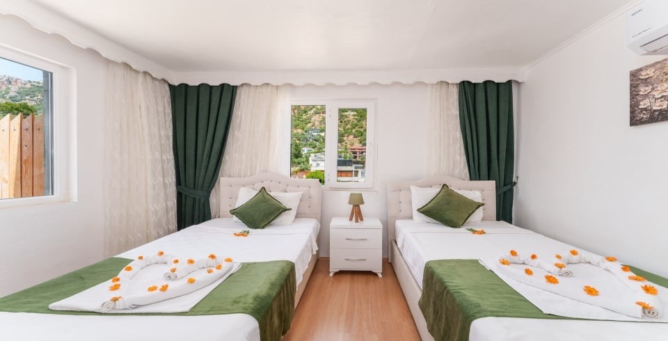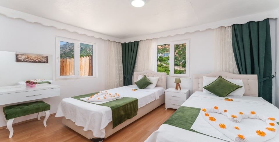3.Yatak Odası: 2 adet tek kişilik yatak, elbise dolabı, makyaj masası, komodin, klima, banyo ve lavabo bulunmaktadır.