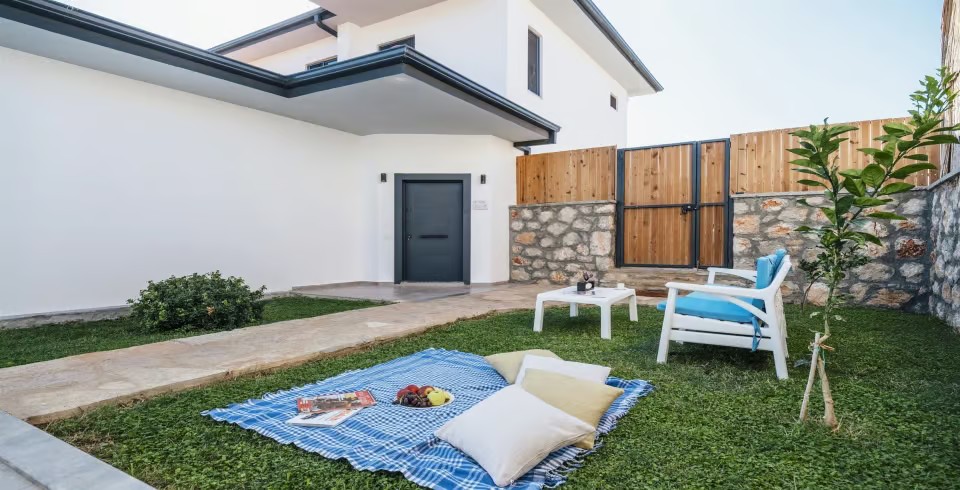 Bahçe : Villamızın bahçesinde özel yüzme havuzu, güneşlenmeniz için 4 adet şezlong, güneşlenme terası, oturma grubu, mangal keyfiniz için barbekü, bulunmaktadır.