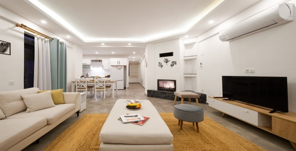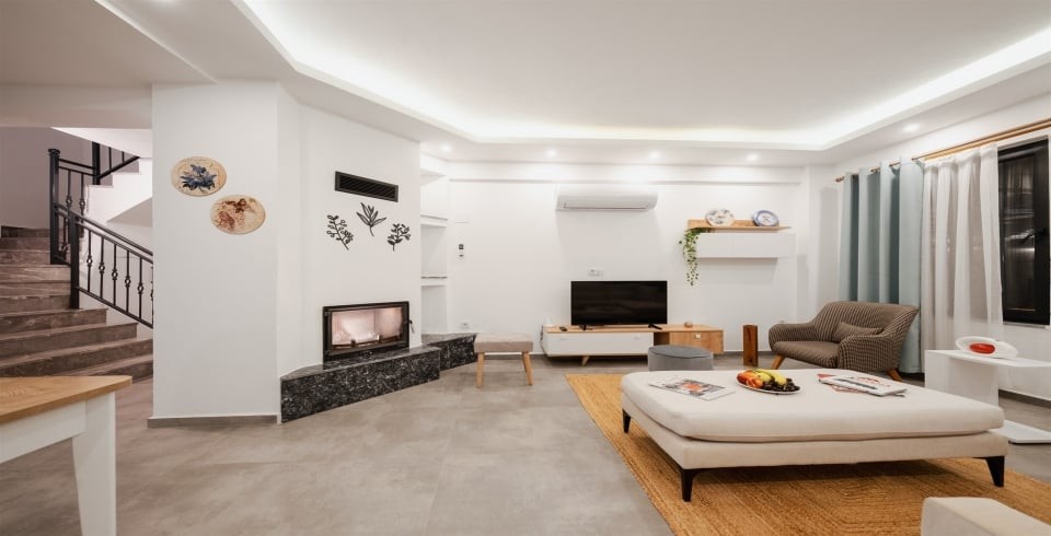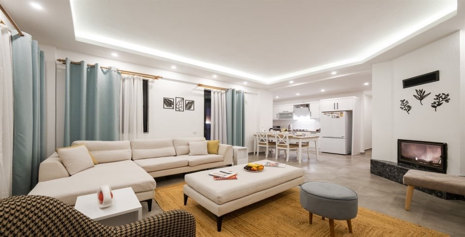 Salon : Sizi şık bir oturma grubu ile klima, televizyon, internet, uydu, koltuk, sehpa ile ferah bir salon bekliyor olacaktır. Havuz terasına çıkış yapılmaktadır.