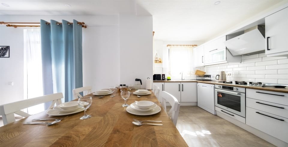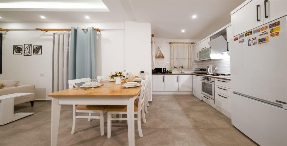 Mutfak : Villamızın geniş Amerikan mutfağı ile sizlere kendi evinizin mutfağı gibi hissettirecek. Ayrıca mutfakta klima, bulaşık makinası, buzdolabı, çamaşır makinası, mikrodalga fırın, su ısıtıcısı, fırın, 4'lü ocak seti ve 4 kişilik geniş yemek masası ile tava tencere vb. mutfak araç gereçlerini kullanma fırsatını sizlere sunuyoruz.
