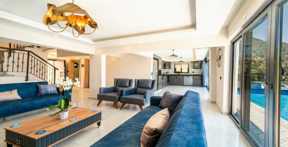 Fethiye’nin doğayla iç içe, sakinliği ve eşsiz manzaralarıyla ünlü bölgesi Faralya’da yer alan Villa Sea Renity, huzur ve konforu bir arada sunuyor. 3 yatak odası ve 6 kişilik kapasitesi, geniş yaşam alanlarıyla aileler ve arkadaş grupları için ideal bir tatil fırsatı sağlıyor.