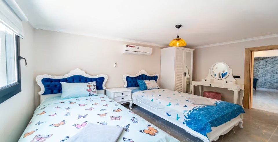 3. Yatak Odası : 2 adet tek kişilik yatak,klima,komodin,makyaj masası ve elbise dolabı bulunmaktadır.