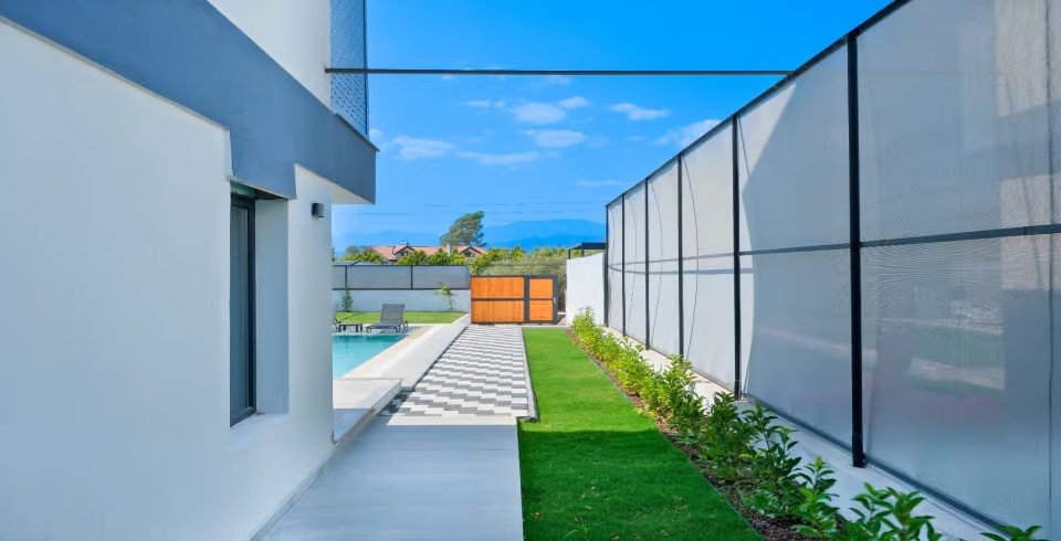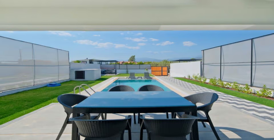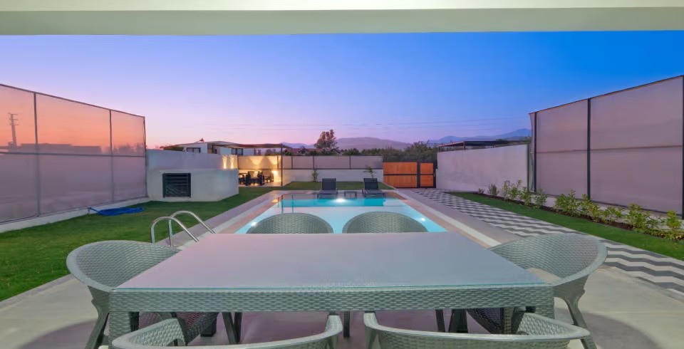 Havuz etrafı korunaklı villalarımızda %100 görünmememe garantisi vermemekteyiz bu villalarımızda her zaman %5 sakınma payı mevcuttur.