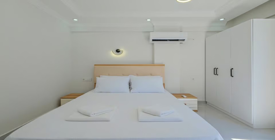 1. Yatak Odası: 1 çift kişilik yatak, komodin, banyo/WC, klima, elbise dolabı, bulunmaktadır.