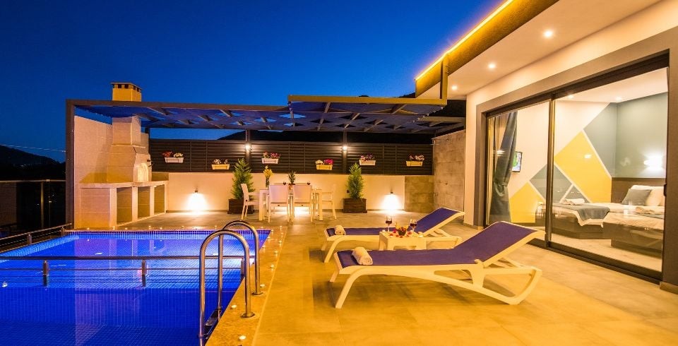 Villa Sedef Kalkan Sarıbelen bölgesinde yer almaktadır. 2 yatak odasına sahip tatil villamız 4 kişilik konaklama kapasitesine sahiptir. Doğa içinde bir konuma sahip olan tatil villası havuz alanı bahçe alanı ile sizlere keyifli bir tatil ortamı sunmaktadır.