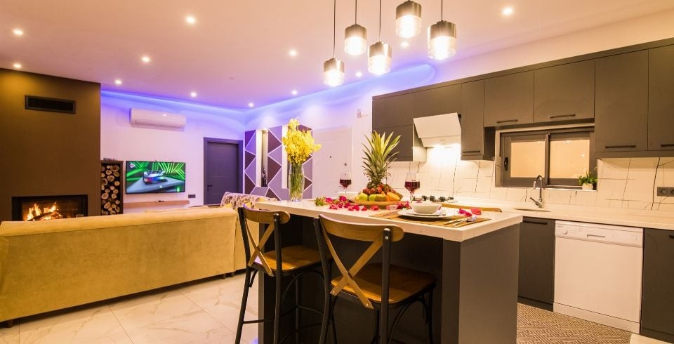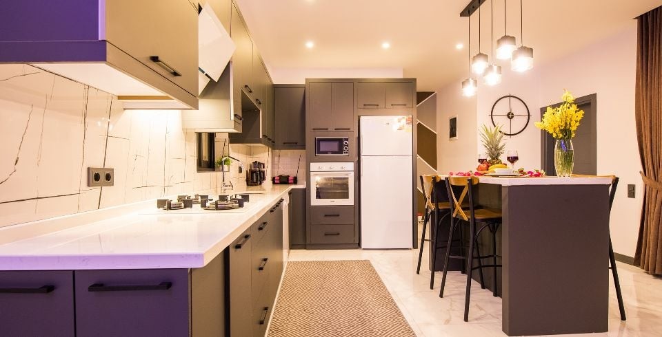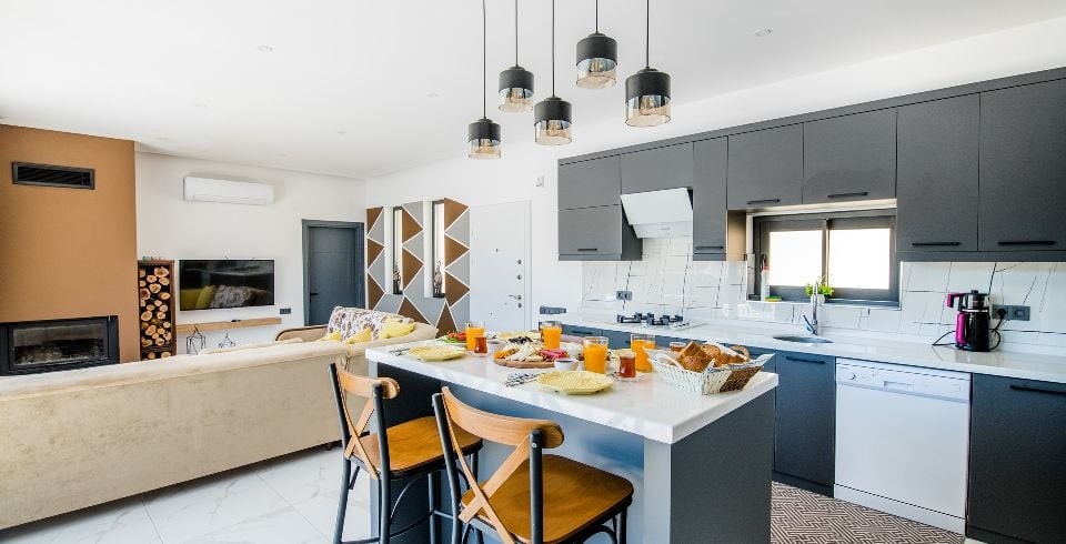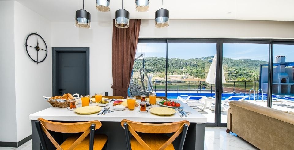 Mutfak: Villamızın mutfağında buzdolabı bulaşık makinası, çamaşır makinası, 4'lü ocak, kettle, mikrodalga fırın, yemek takımı bulunmaktadır.